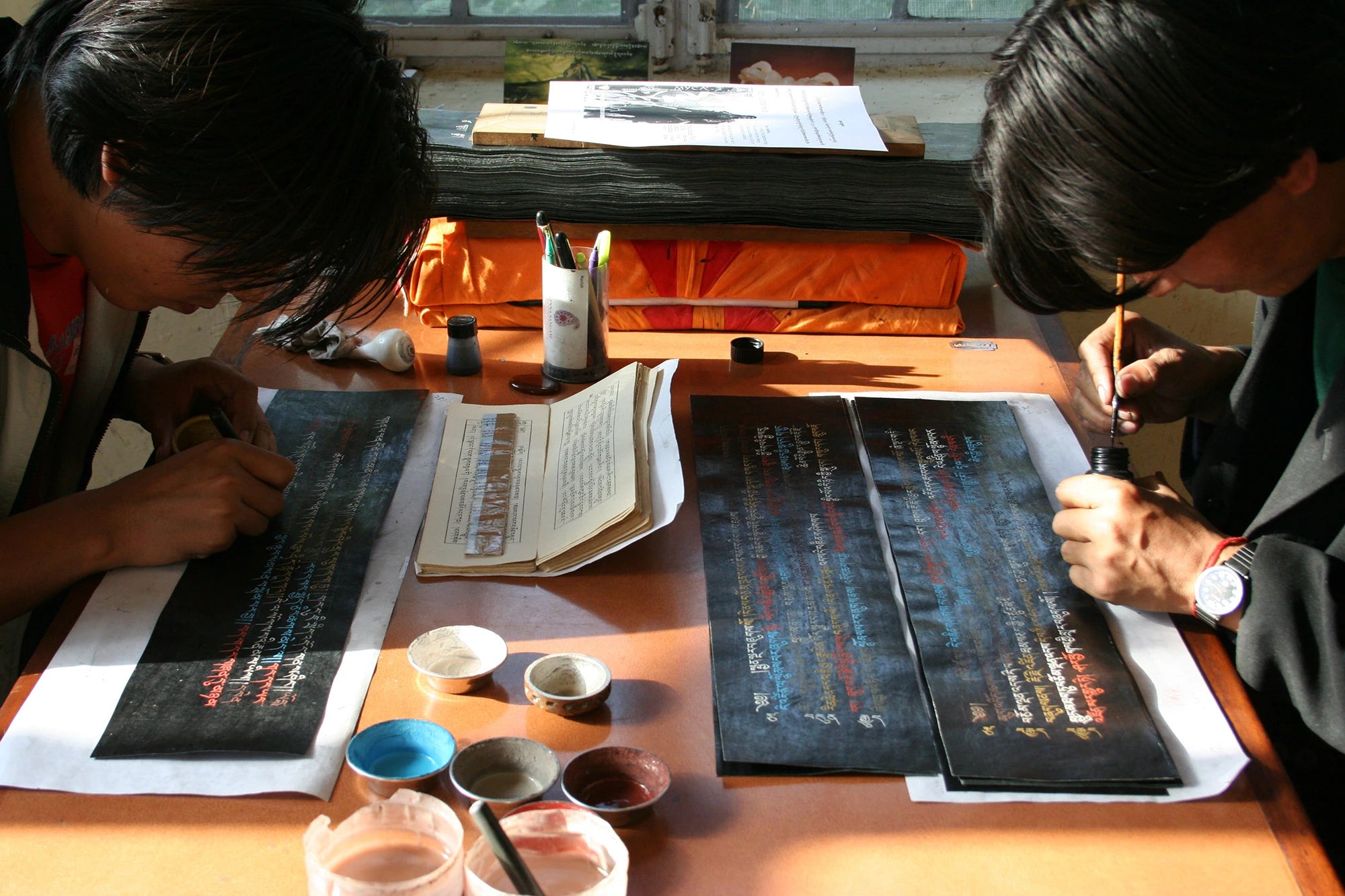 The scriptorium project was a series of handwritten texts illuminated in gold, silver and other precious materials. Buddhist scriptures are considered even more holy than statues in Tibet and the m...